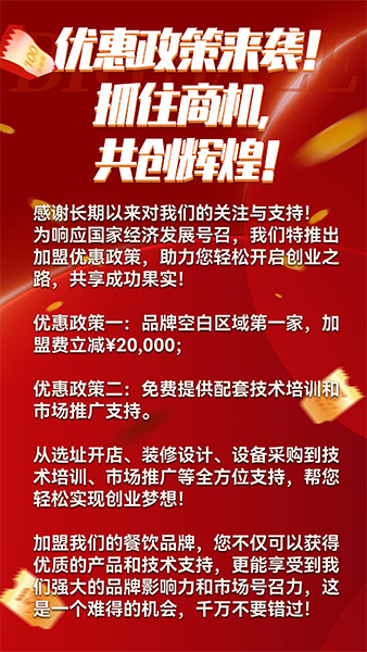 一次投資,四季經營,全年無淡季,地鍋雞加盟,賺錢很簡單.開店輕松盈利!輕松成為富1代!  淼莊餐飲把客戶的滿意作為公司發(fā)展的方向,不斷提升市場競爭力,對內加強員工素質培訓,貫徹先進的服務理念;對外整合資源,與上下游強強聯合,打造強大的餐飲連鎖產業(yè)鏈。公司有完善的管理機制,研發(fā)機制,加盟機制,培訓機制,和強干的執(zhí)行團隊,各部門無縫銜接,確保為各地區(qū)直營、加盟連鎖店提供服務。對加盟商開業(yè)籌備' 前期培訓、后期經營管理及時提供各項支援與輔導,建立完善的營運、企劃、訓練、物流、資訊等 管理系統,全力打造合作共臝的特色餐飲管理機構,為淼莊利益共同體的良性發(fā)展保駕護航。  2017年淼莊餐飲管理有限公司與北京連鎖邦品牌策劃有限公司達成戰(zhàn)略合作,進入快速發(fā)展期,全國招商火爆進行中。加盟淼莊地鍋雞享9大優(yōu)勢:  1、資源易取。  所有原材料市面上都能買得到,如排骨,草雞,精米等  2、技術好學。  一個人三天時間就可以學會,不再需要廚師,回家后仍不會的,公司將派技術員上門親自指導。  3、獨特的保密配方。  許多人不斷模仿,卻從未成功,原因正在于此!  4、幫助選址。  如有對選址拿不定主意的人,公司派市場督導員幫助上門選址。  5、爐臺搭建和裝修。  公司派專人上門指導爐臺搭建、裝修風格等。  6、投資少,利潤回報率高。  不用像其它餐飲行業(yè)一樣請很多大廚,也不用購買任何設備。  7、無價格可比性。  公司對價格沒有作硬性設限,不同地區(qū)的消費水平不一樣,同一地區(qū)不同地址也不一樣,但以消費者能接受為限,因為淼莊地鍋雞獨物性,一般在當地還沒有市場可比性,價格適當的高低基本不會成為銷售的障礙。所以為經營者留下的巨大的利潤空間  8、無特定消費群體。  無論男女老少都愛吃,南方北方沒消費差別  9、無學歷年齡受限。  淼莊地鍋雞誰都可以開,只要立志創(chuàng)業(yè)的人都能行。